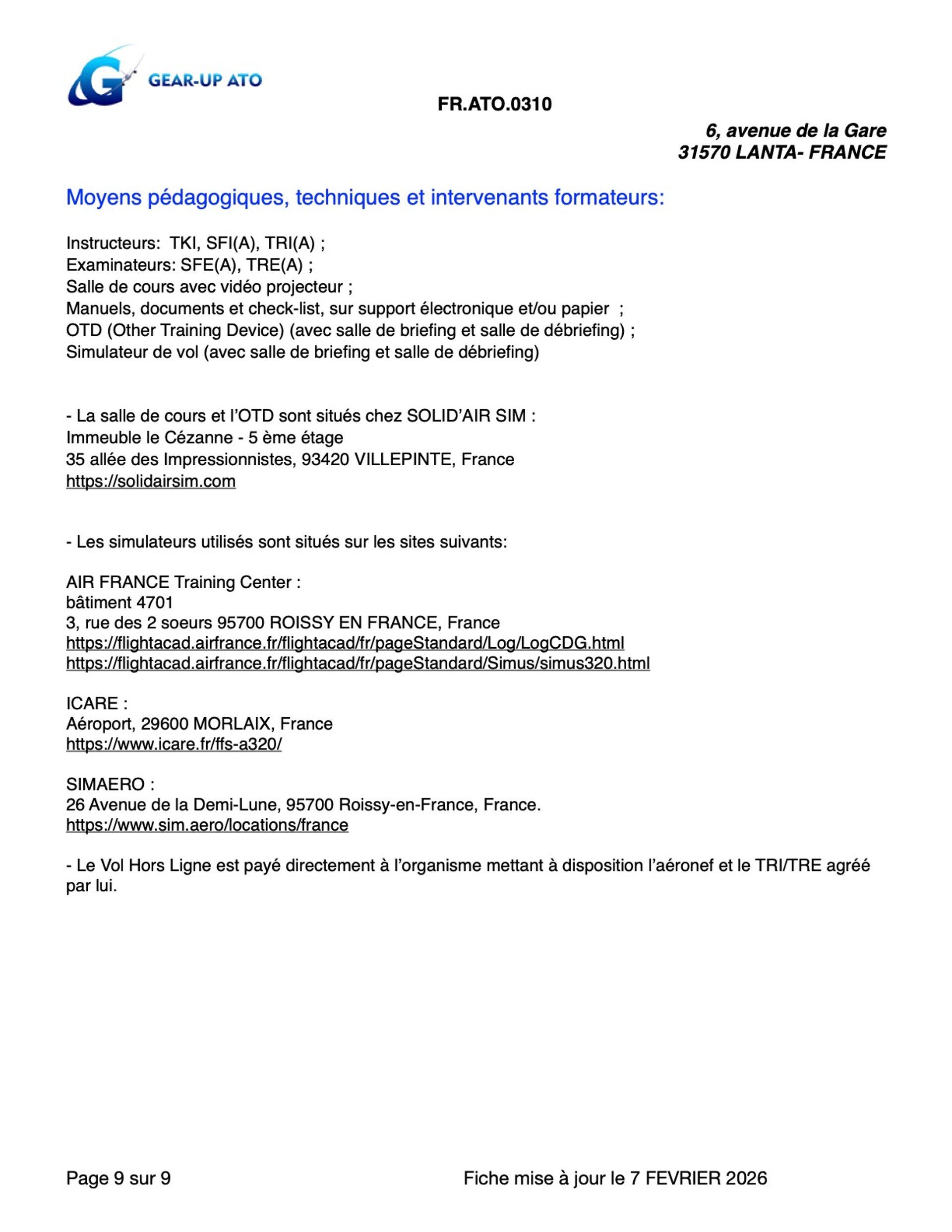 NOS FORMATIONS